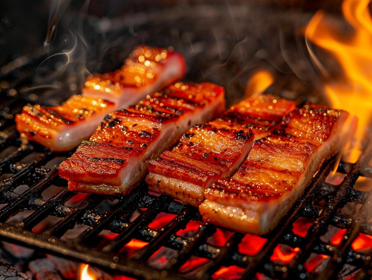 A panceta na churrasqueira é uma das carnes mais irresistíveis do churrasco. Fica crocante por fora, suculenta por dentro e com sabor marcante.